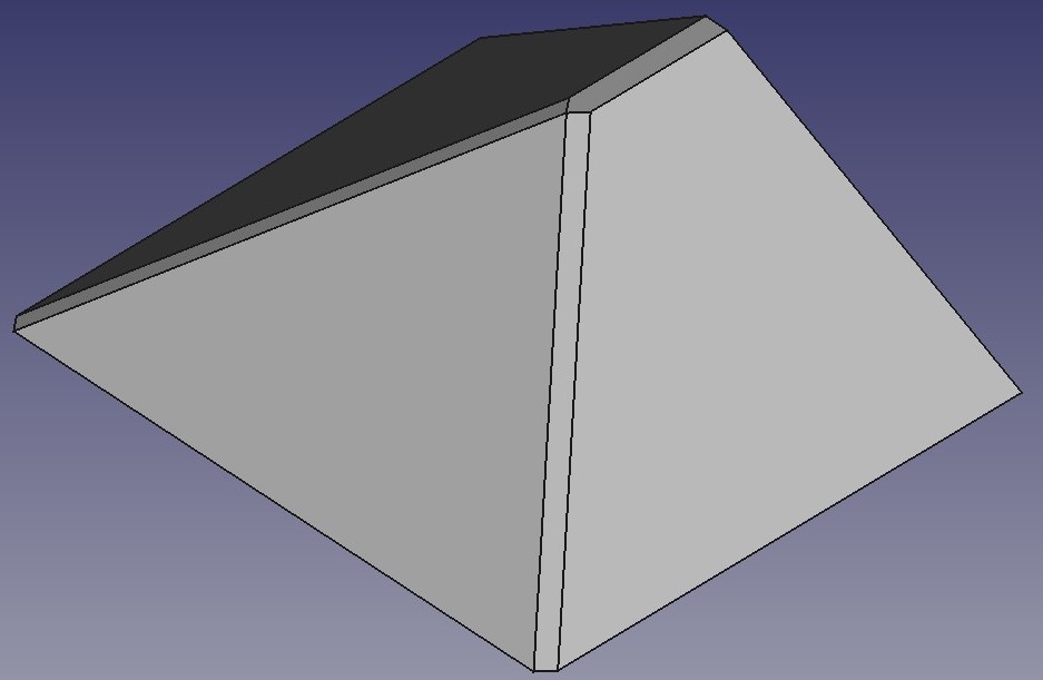 - Half-pyramid junction (not illustrated). Similar to the Pyramid junction, but the hip ridges are spread evenly around 180° rather than 360°, and meet with a normal (level) roof ridge. The result is a normal roof with a pyramid end.