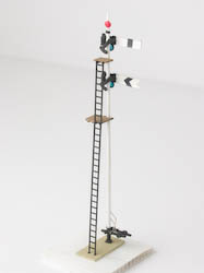 Where the signal arm moudlings feature holes for the spectacle lenses (or you pierce the mouldings yourself, using an appropriate drill and careful filing), the transparent-backed decals can be used to provide translucent lenses: apply the complete decal to the front face of the arm, but cut the spectacles off the decal for the rear face.