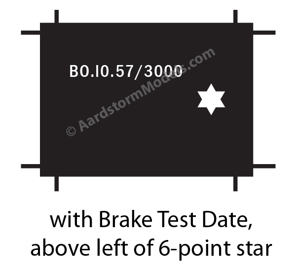 This page shows the range of wagon plate and markings decal available in this group. To use it to select a paricular decal type, please click on the button below the relevant illustration. This will take you back to the main wagon plates and markings decals page while setting the decal type to that of the illustration you have selected. There you will be able to make changes to the basic plate or marking decal you've selected here.